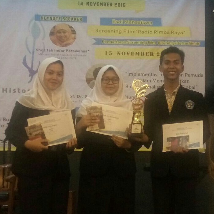 Kemenangan tim debat bahasa berlanjut pada  Lomba Debat Bidang Sejarah tingkat Nasional di Universitas Indonesia yang diadakan oleh Fakultas Ilmu Pengetahuan Budaya pada Selasa, 15 November 2016, atas nama: