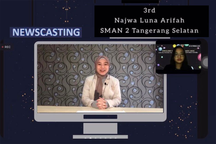Najwa Luna Arifah, siswi imut kelas XI MIPA 3 ini berhasil meraih juara 3 dalam lomba ENGLISH CONTEST OF BASIC x TOEFL 2021 katagori News casting yang diselenggarakan oleh Basic (Base of english Science Club), Universitas Jenderal Soedirman.