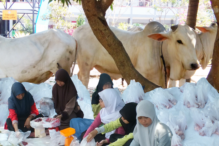 Kerja ikhlas dan kebersamaan warga sekolah saat pemotongan dan pembagian hewan qurban, sebanyak 1200 bungkus daging sapi dan 100 bungkus daging kambing berhasil di salurkan kepada warga sekitar yang terbagi dalam 3 ring. Ring pertama dibagikan untuk warga di lingkungan sekolah, ring kedua untuk warga di lingkungan wilayah kecamatan Setu dan ring ketiga untuk warga di luar kecamatan Setu.