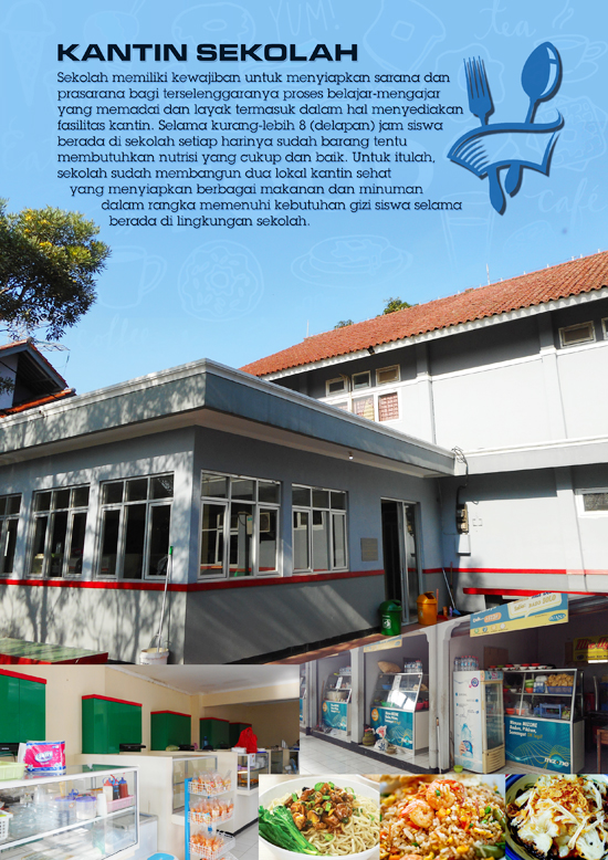 Oleh karena proses Kegiatan belajar mengajar di sekolah berlangsung dari jam 07.00 hingga 15.45 WIB, ketersediaan makanan sehat dan bermutu perlu siapkan. Para siswa dapat membeli makanan dan minuman sehat di kantin yang bersih, tertata apik dan menyenangkan. Bagi para siswa yang membawa makanan sendiri dari rumah, dapat menyandatap di ruang kantin bersama teman-teman lainnya.