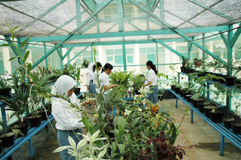 Green house merupakan tempat atau sebuah bangunan dimana tanaman di budidayakan. Keberadaan green house di sekolah digunakan sebagai sarana pembelajaran khususnya bagi pelajaran biologi dan mengajak para siswa untuk mengenali, mencintai dan melestarikan lingkungan. Green house selain memiliki fungsi menghindari terpaan air hujan yang dapat menyebabkan tumbuhan tersebut rusak atau mati, para siswa juga menjadi lebih nyaman dalam mempelajari jenis-jenis tanaman saat berada di dalam ruangan green house.